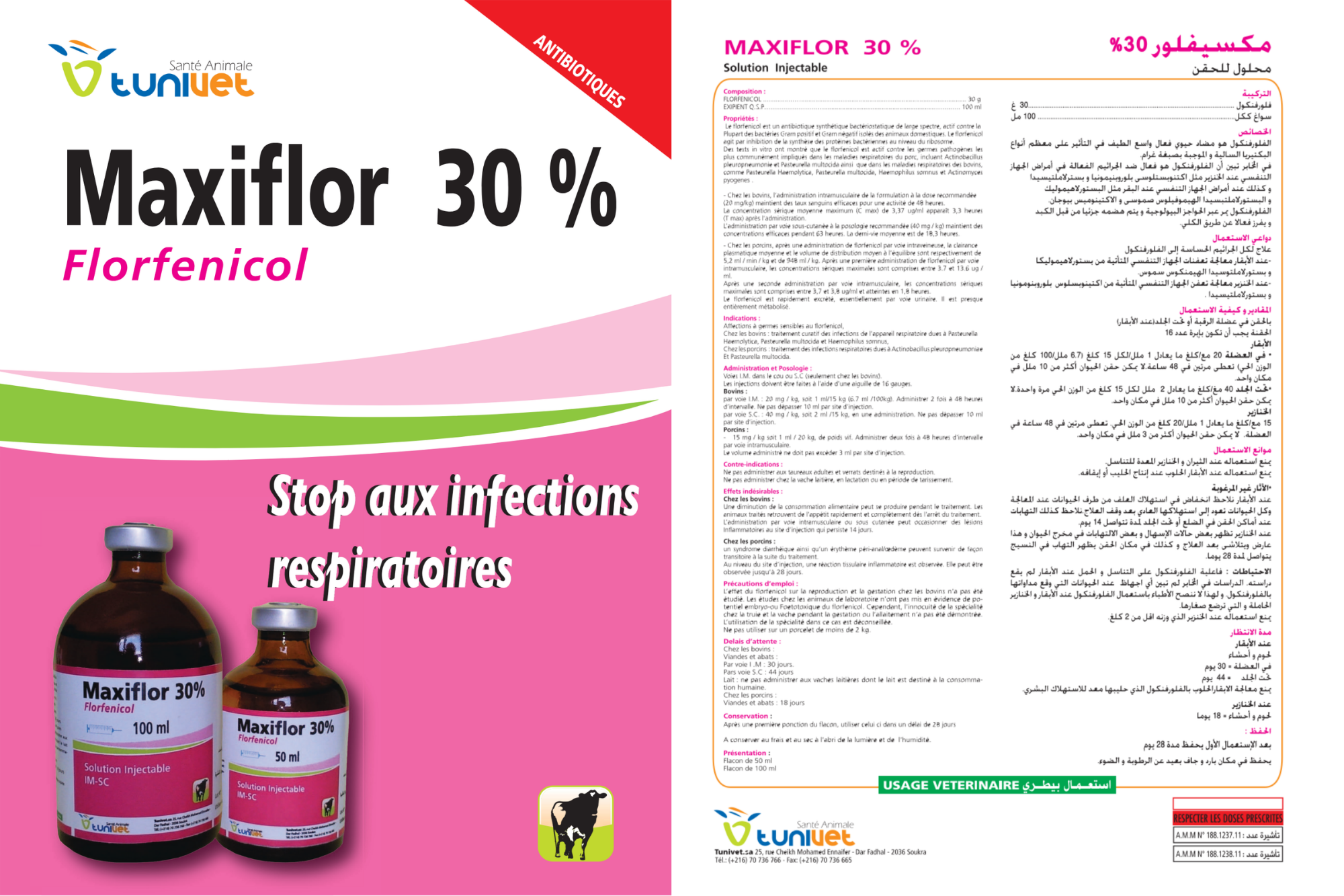 le MAXIFLOR 30% est indiqué pour le traitement affections à germes sensibles au florfénicol.